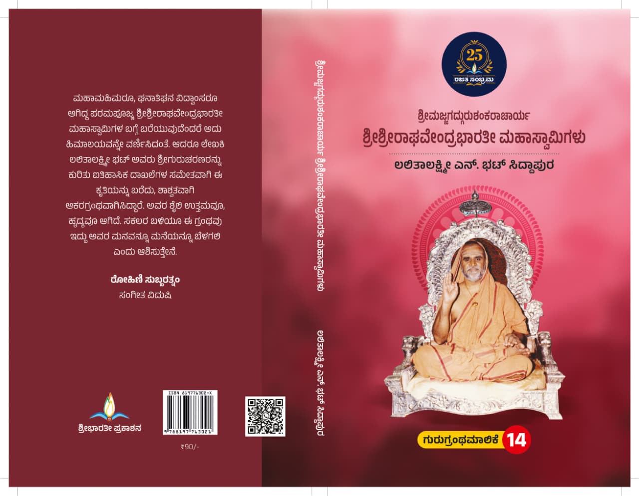 ಮಹಾಮಹಿಮರೂ, ಥನಾತಿಘನ ವಿದ್ವಾಂಸರೂ ಆಗಿದ್ದ ಪರಮಪೂಜ್ಯ ಶ್ರೀಶ್ರೀರಾಘವೇಂದ್ರಭಾರತೀ ಮಹಾಸ್ಥಾಮಿಗಳ ಬಗ್ಗೆ ಬರೆಯುವುದೆಂದರೆ ಅದು ಹಿಮಾಲಯವನ್ನೇ ವರ್ಣಿಸಿದಂತೆ. ಅದರೂ ಲೇಖಕಿ ಲಲಿತಾಲಕ್ಷ್ಮೀ ಭಟ್ ಅವರು ಶ್ರೀಗುರುಚರಣರನ್ನು ಕುರಿತು ಐತಿಹಾಸಿಕ ದಾಖಲೆಗಳ ಸಮೇತವಾಗಿ ಈ ಕೃತಿಯನ್ನು ಬರೆದು, ಶಾಶ್ವತವಾಗಿ ಆಕರಗ್ರಂಥವಾಗಿಸಿದ್ದಾರೆ. ಅವರ ಶೈಲಿ ಉತ್ತಮವೂ, ಹೃದ್ಯವೂ ಆಗಿದೆ. ಸಕಲರ ಬಳಿಯೂ ಈ ಗ್ರಂಥವು ಇದ್ದು ಅವರ ಮನವನ್ನೂ ಮನೆಯನ್ನೂ ಬೆಳಗಲಿ ಎಂದು ಆಶಿಸುತ್ತೇನೆ.